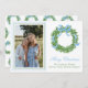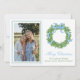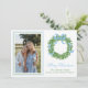 Blue Bow Christmas Boxwood Wreath Photo Holiday Card