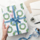Blue Bow Christmas Boxwood Wreath Wrapping Paper