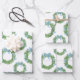 Blue Bow Christmas Boxwood Wreath Wrapping Paper Sheet