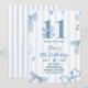 Blue Bow Double Digit Girl Birthday Invitation