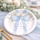 Blue Bow Floral Baby Boy Shower Paper Plate