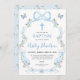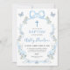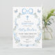 Blue Bow Floral Wildflower Baptism Christening Invitation