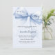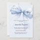 A soft, light blue background, decorated with a large blue bow. Personalise and add a name and party details.