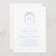 Cute blue minimalist, vintage inspired baby shower invite with a whimsical hand drawn watercolor monogram crest.