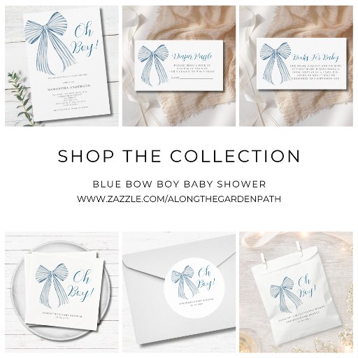 Blue Bow Oh Boy Baby Shower Invitation
