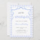 A birthday invitation with a blue bow. This pretty invitation features a blue watercolor bow on a blue plaid background.