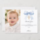 Blue bow photo boy gold cross Baptism Thank You Card
