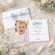 Thank your guests with this elegant boy baptism thank you card featuring a soft blue bow and gold cross design. This personalized baby boy christening thank you card includes space for a photo and custom message, making it a beautiful keepsake from your child’s special baptism day.
