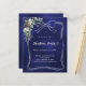 For a Christmas party with family and friends.. Decorated with a white simple hand-drawn bow, greenery and a pine cone. Personalise and add the details. Christmas party with a heart. A navy blue, uneven coloured background.