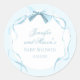 Blue bow ribbon classic preppy baby boy shower round sticker