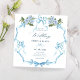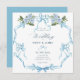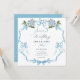 Blue bow ribbon floral wedding invitation