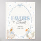 A little silly goose is celebrating their birthday! This favours and treats sign design features a blue cottage-core design with blue bows, daisies and coquette-styled little geese.