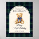 This fun birthday welcome sign, featuring a cute teddy bear on a tartan plaid background, can be personalized with all your special birthday party details. Designed by Thisisnotme©