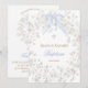 blue bow white baby's breath flowers Baptism Invitation