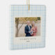 Celebrate the season with this charming Blue Bow Wreath Photo Ornament, featuring a classic blue gingham pattern and a beautifully illustrated wreath tied with a soft blue ribbon. Add your family photo to create a timeless, preppy grandmillennial keepsake perfect for your tree or for gifting to loved ones.