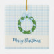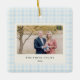 Blue Bow Wreath Gingham Photo Christmas Ceramic Ornament