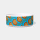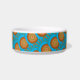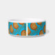 This is a heavy, durable bowl decorated with Tibbies of many colors, the perfect size for hungry/thirsty Tibs. The design is interesting and printing clear.