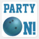Blue Bowling Ball Party On Sticker features our original blue ball with swirling texture as the O in On. Great for bowling enthusiasts, bowlers, and bowling teams. Have a ball and collect all of our bowling ball sports gear. It’s all fun and games at Imagine That! Design's Sports Centre! Give these away as party favours or use as envelope seal stickers for your bowling party invitations. Game on!