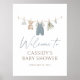 Welcome friends and family to you or a loved one's baby shower with this elegant baby clothes themed welcome sign.