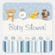 Cute blue and white stripe pattern with a blue bow and ribbon. Across the top there are four cute cartoon animals. Great for a baby boy baby shower, birthday or other special occasions. This also come in pink for a baby girl.