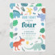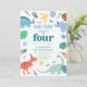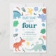 Blue Boy Dinosaur Boho 4th Birthday Invitation
