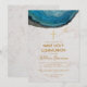 This elegant first communion invitation, recommended for a boy, has a big blue agate geode on the upper part, above the text. The background is white marble.