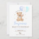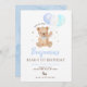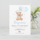 Blue Boy Teddy Bear Balloon First Birthday Invitation