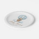 Blue Boy Teddy Bear Bearly Wait Baby Shower Paper Plates features an adorable watercolor illustration of a teddy bear on a blue hot air balloon.