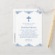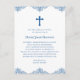 This classic, traditional boys baptism or christening invitation features a blue cross and a decorative blue design along the top and bottom edges of the invite. The text can be changed to suit a First Communion instead of a baptism or christening. Add your return address to the back, and any additional text if desired.