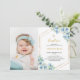 Celebrate your little one's special day with our charming Baptism Boy Invitation! This elegant and adorable invitation features a blue and white colour palette, symbolic of purity and innocence. The delicate design includes angelic motifs and beautiful script fonts, setting the perfect tone for this significant milestone in your child's life. Share the joy with family and friends as you invite them to witness and participate in this heartfelt occasion. Make memories that will last a lifetime with our Baptism Boy Invitation.