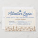 Blue and brown the adventure begins baby shower invitation featuring a wildness desert scene and a rope style calligraphy heading. Great for a combined wilderness western boys baby shower.