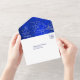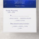 This pretty all season wedding invitation with tear away RSVP card in tones of silver and royal blue will give a sense of elegance to your wedding! The inside has a lovely silver swirl design on the right inside flap, with your monogram, also in silver, on the left. There's a subtle silver confetti overlay to add a bit of sparkle. Your wedding text is also in silver and everything is placed on a stunning royal blue gradient background. The bottom tear away RSVP portion is white to make it easy for your respondent to mark. If you don't need a text field, just blank it out, and if you need help organising different text, please contact us. We are always happy to help. If you're having a buffet reception, we can work with you to re-design the RSVP portion, so don't hesitate to ask! An added bonus and personal touch is your own photograph on the back flap.