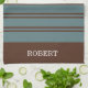 Blue &Brown Abstract Pattern Monogram name Tea Towel
