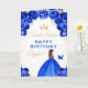 This elegant and glamourous sweet sixteen birthday card can be personalised with a name or title such as daughter, granddaughter, niece, friend etc. The design features a beautiful princess with brown hair in a royal blue ball gown. The text combines handwritten script and modern sans serif fonts for a classy and sophisticated look. The floral arrangements, butterfly and gold confetti create the perfect blend of rustic and chic. Graphics by www.etsy.com/uk/shop/SunflowerDayLove