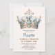 Blue Brown Princess Crown 1st birthday Party Invitation