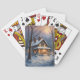This cozy winter painting features a glowing log cabin among snow-covered trees. Warm lights pour from the windows, creating a peaceful forest art. Perfect for poker cards that bring the charm of rustic winter nights to every hand. Ideal for holiday games or nature lovers.