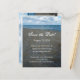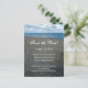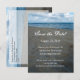 Create an elegant image with this lovely ocean blue and sandy brown beach wedding set. Features brown tan sand with clear blue water and crisp blue sky with puffy clouds. Sands provide a backdrop for white text. Part of a complete wedding invitation and matching accessory set. © www.CustomInvitesOnline.com