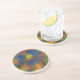 A cool sandstone Coaster, with an abstract chequered pattern in shades of dark blue, dark green and warm earth colours.