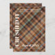 Unique and trendy congratulations graduate announcement and celebration party invitation card, framed with a stylish grey, blue, taupe, dark brown and ivory coloured plaid tartan pattern background. With room to customise or personalise with a photo, the name of the graduate, class graduation year, high school, future college or university name, and celebration party event information. Let the family, friends and neighbours know there is a happy graduate ready to conquer the world, and invite everybody to come celebrate the happy event with you!