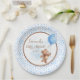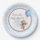 Blue Brown Teddy Bear Baby Shower Paper Plate