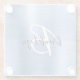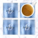 Blue Brushed Metal Black White Script Monogram Glass Coaster