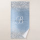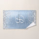 Blue Brushed Metal Silver Glitter Monogram Name Bath Towel Set
