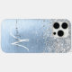Blue Brushed Metal Silver Glitter Monogram Name Case-Mate iPhone Case