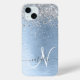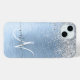 Blue Brushed Metal Silver Glitter Monogram Name Case-Mate iPhone Case