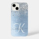 Blue Brushed Metal Silver Glitter Monogram Name iPhone Case