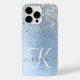 Blue Brushed Metal Silver Glitter Monogram Name iPhone Case
