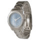 Easily personalise this trendy chic watch design featuring pretty silver sparkling glitter on a blue brushed metallic background.