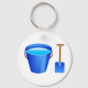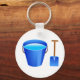 Illustration of a bright blue coloured beach bucket filled with water and a matching spade for the summer holidays. Easily customize and choose your own background colour. Image available on various gifts and products.