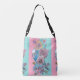 Blue Budgie Bird Rose Floral Pink Aqua Girls Name Crossbody Bag