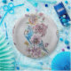 Blue Budgie & Roses Art Birthday Party Paper Plate